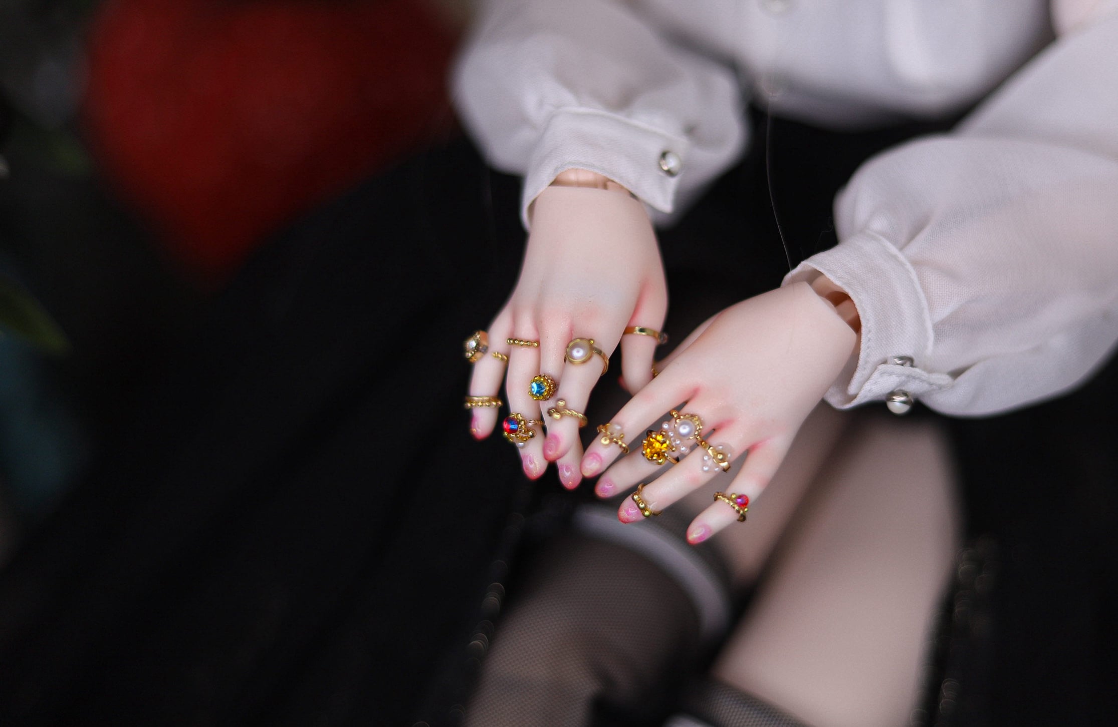 DD用ハンドパーツにエアブラシ塗装をし、指輪風のデコレーションを施しました。