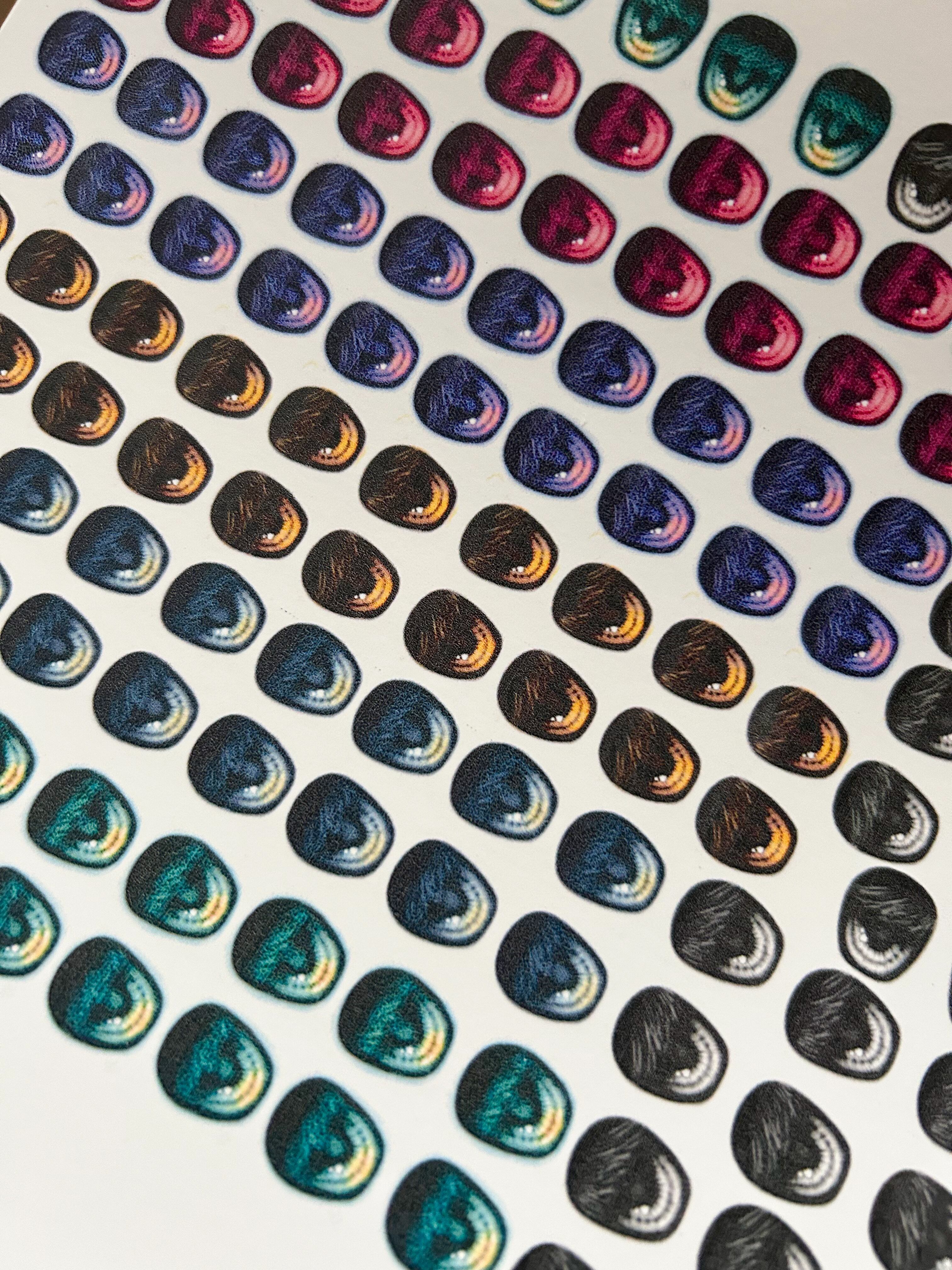 ・色見本の画像は元データであり、それを印刷したものをアイに加工しています。